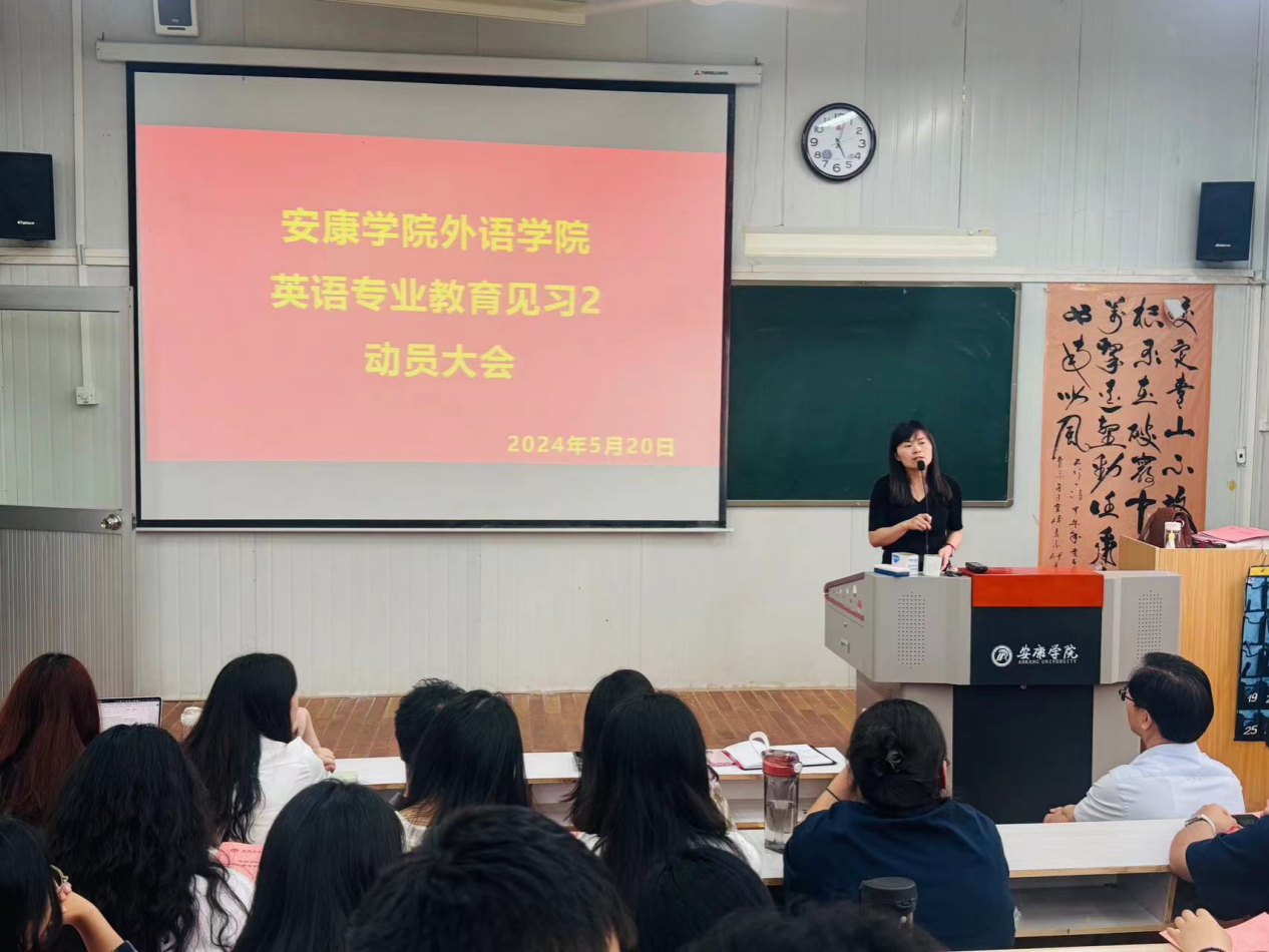 首先,院长张哲华讲话强调了英语专业学生参加教育见习的重要性以及学院的高度重视,副院长胡卫卫就见习目标任务和基本要求做了一定的说明。她强调教育见习是英语专业学生的必修实践环节,所有学生和指导教师必须从思想上和行动上高度重视此项工作,以一名教师的标准严格要求自己,努力将此次见习工作做细、做实、做好。见习学校汉滨高中永红校区是教学能手摇篮,也是校外实习基地。参与见习的学生应该礼貌得体,谦虚谨慎,积极学期,言谈举止尽力融入其优良的校风学风。胡卫卫还强调了见习的重要内容:要做到三贯通:见习实习研习;四涵盖:师德、教学(教学设计和教学效果)、班主任管理、教研;
