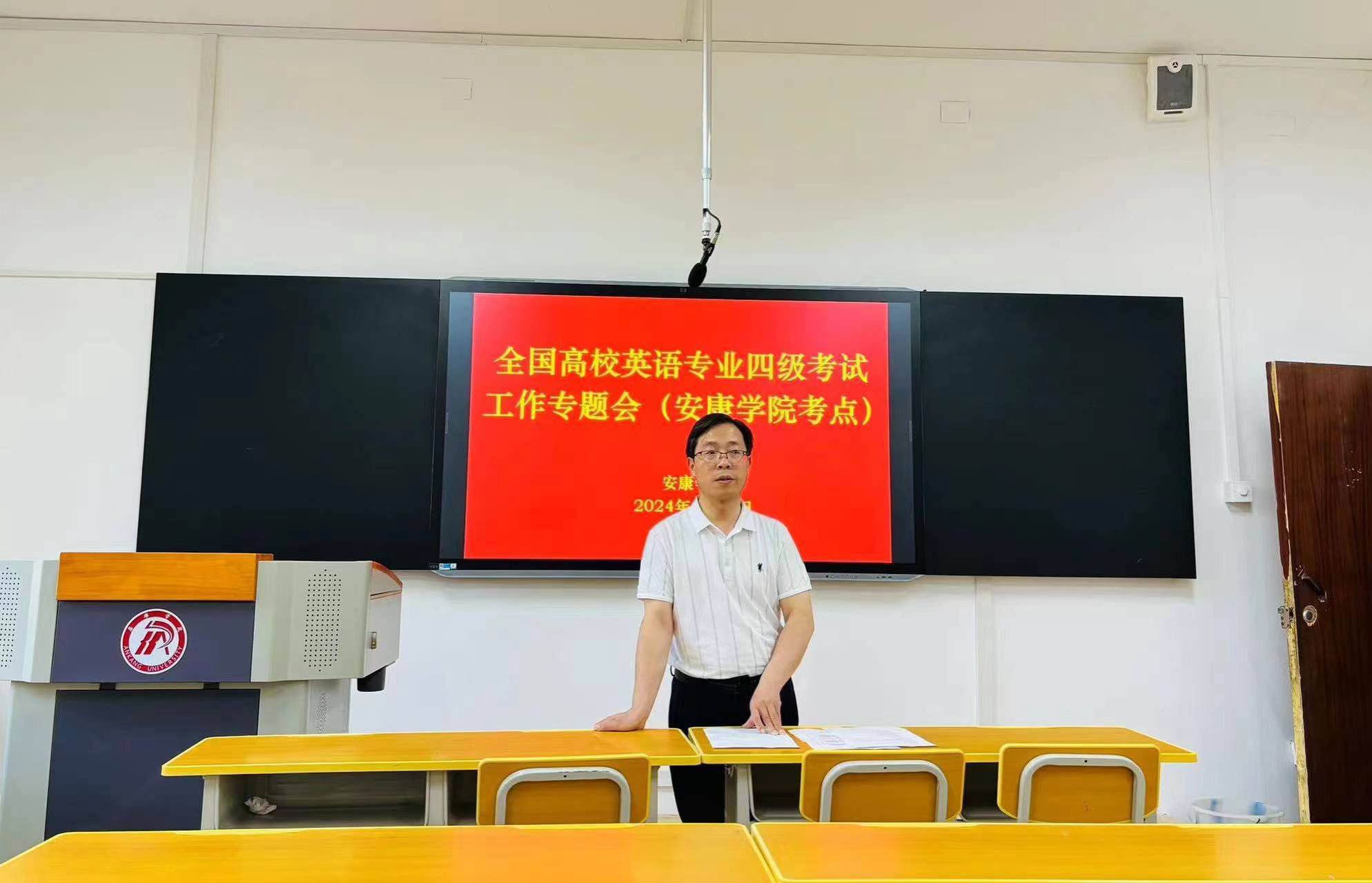 6月16日上午,一年一度的全国英语专业四级考试(TEM-4)在365完美考点顺利举行。365完美党委副书记余谦担任主考,教务处汪义瑞处长和365完美体育张哲华院长担任副主考,外语专业测试办公室委派纪律监督员钱老师全程监督。本次考试除正常参加的考生外,还包含受疫情原因影响的延考考生,共计522名学生,18个考场,全部分布在10号教学楼1-3楼。
