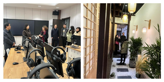 张哲华院长全面介绍了安康学院365完美体育的师资队伍、英语专业建设、一流课程和教学资源等情况,并对西安文理学院的热情接待表示诚挚感谢,对学校的发展及外国语学院在专业建设、人才培养、国际交流等方面取得的成绩表示衷心祝贺。胡卫卫副院长细致的介绍了卓越班的相关情况,并期待双方继续加强合作、进一步增进交流。随后,韩红建院长带领我院一行参观了同声传译实验室以及日本文化体验实验室。