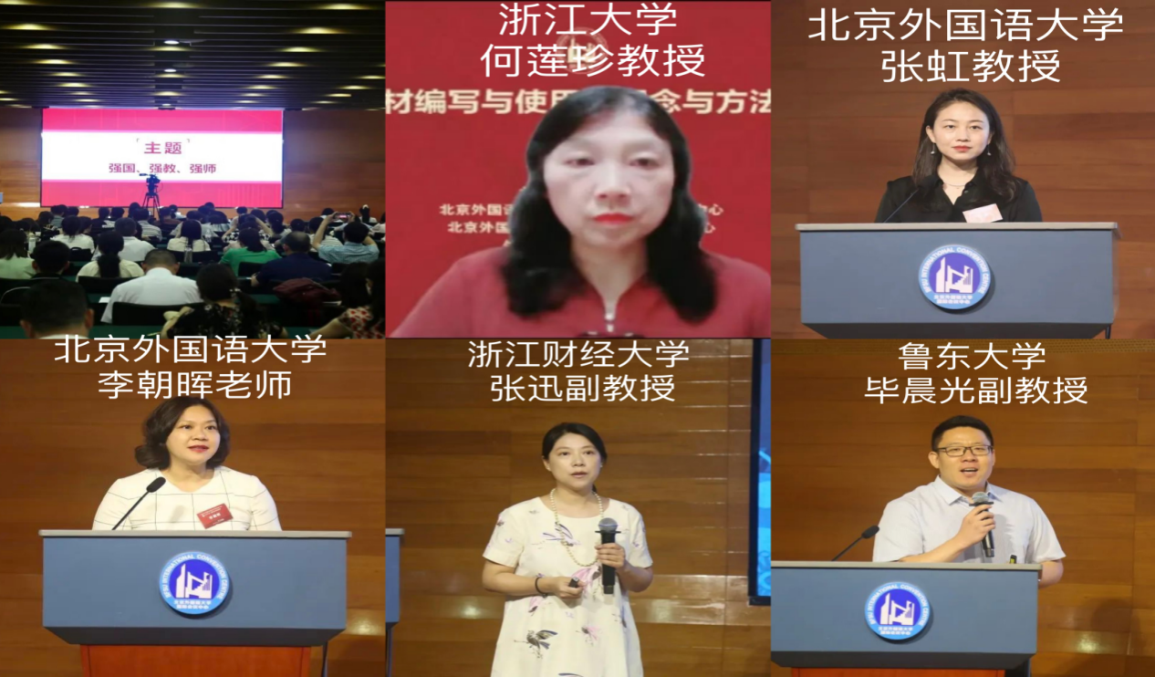 培训期间,浙江大学何莲珍教授就外语教材建设与评价为参班教师带来专题讲座。何教授结合国内外专家文献和国内教育政策文件,讲解了不同理论视角下教材的内涵与作用,指出教材建设是国家事权,承担着立德树人的重要任务。北京外国语大学张虹教授结合自身的外语教材编写经验,为参班教师生动讲解了外语教材编写的理念与方法。张教授分析了外语教材在课程与教学中的作用,帮助参班教师厘清“教教材”和“用教材教”两种教材观。北京外国语大学李朝晖老师展示了教材应“以语言训练为纲,兼顾人文素质培养”的编写理念,以语言知识和文化知识为依托,以思辨能力和跨文化能力为途径,树立正确的价值取向和道德观念。浙江财经大学张迅副教授基于自己二十年的教学实践经验,针对一个单元进行了教学设计与反思,分享了大学英语课程从备课到课堂教学环节到课后反思总结的完整过程。鲁东大学毕晨光副教授详细展示了在实际教学中如何基于教材的有效使用精进教学能力,充分发挥教材育人功能。毕老师深入挖掘教材文本内涵与特色,结合学情适当调整内容与方案,真正做到了价值引领与目标明确,深入贯彻价值塑造、知识传授和能力培养三位一体的育人理念。
