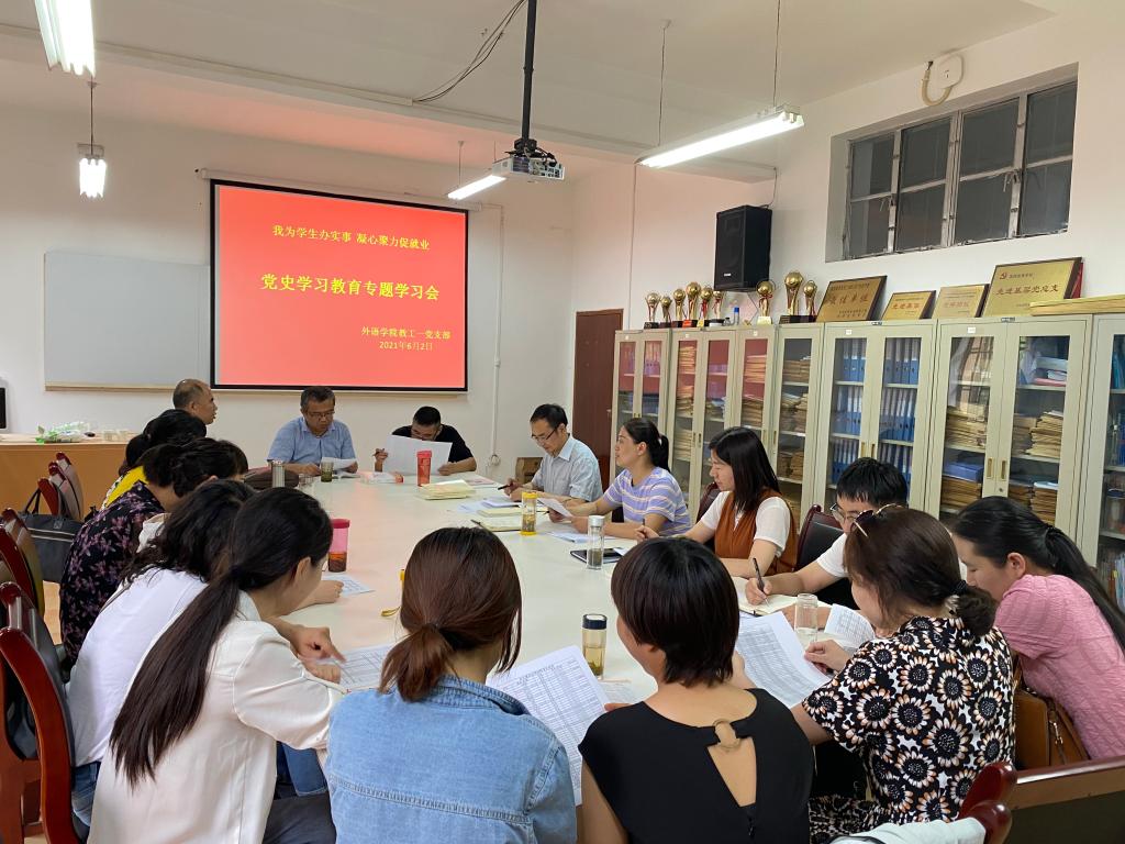 为深入贯彻落实《安康学院“我为群众办实事”实践活动工作方案》和《365完美体育“我为群众办实事”实践活动工作方案》,结合当前工作实际,365完美体育教工一党支部6月2日在6109召开了“我为学生办实事凝心聚力促就业”为主题的党史学习教育专题工作会议,全体党员、英语系、商务英语系全体教师参加了本次专题学习会。学习会由党支部书记陈玉平主持。