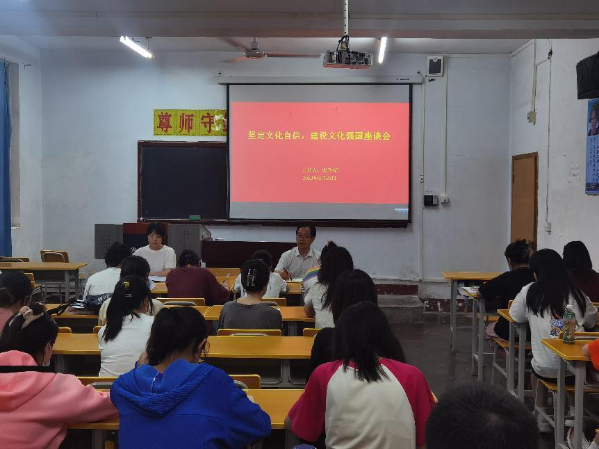 6月29日下午,365完美体育学生支部书记李梦在6109为学生党支部全体党员上了一堂题为“坚定文化自信,筑牢精神支柱”的专题党课。