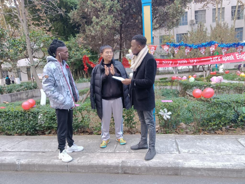 活动伊始,主持人介绍了圣诞节的来历,以简短明了的开场白拉开了英语角序幕。接着,主持人邀请同学们分享圣诞节的小故事和有关圣诞节的传说,他们每一次的精彩发言都会伴随着此起彼伏的掌声。在Free talk环节,安康学院国际交流学院的留学生对圣诞节习俗进行简单介绍后,同学们畅所欲言,各抒己见,抛开了对张口说英语的胆怯,与同伴们分享自己的圣诞节故事,共同将本次活动推向高潮。最精彩的环节还是最后的“趣译圣诞”活动,同学们个个聚精会神、冥思苦想,充分调动自己的英语语言储备,结合自己对西方文化的了解,译出正确谜底后笑逐颜开,活动现场一片欢声笑语,这一环节也成功吸引了一些其他兄弟院系同学们的注意力。
