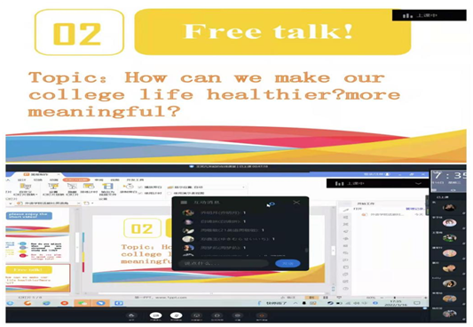 活动首先以3个励志的短视频奠定基调;在视频播放完毕后,主持人提出了与同学生活息息相关的问题,探讨对于为期两周网课的看法,如何在疫情期间在保持健康的学习与生活习惯,提高学习效率等。整个过程,主持人与同学们积极互动且配合默契,表现出很高的热情与参与积极性。