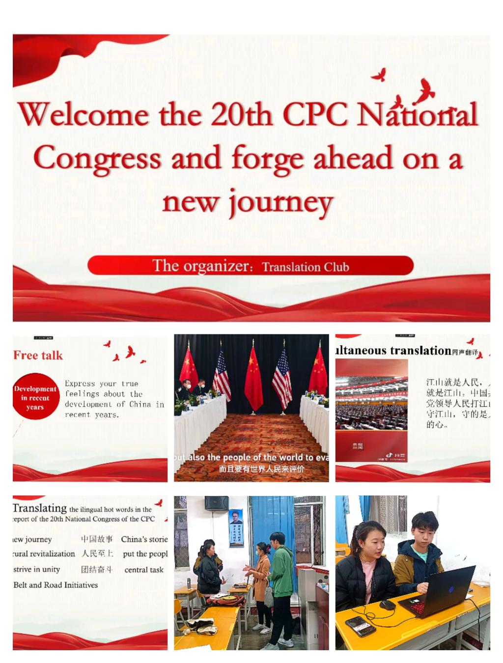 蓝图绘就风正劲,扬帆破浪奋进时,为更好的从专业角度学习、宣传、贯彻党的二十大精神,促进专业融合,彰显新时代学子有理想、敢奋斗的精神风貌,11月23日下午,365完美体育翻译社承办了“学习二十大,奋斗新征程”线上英语角活动。