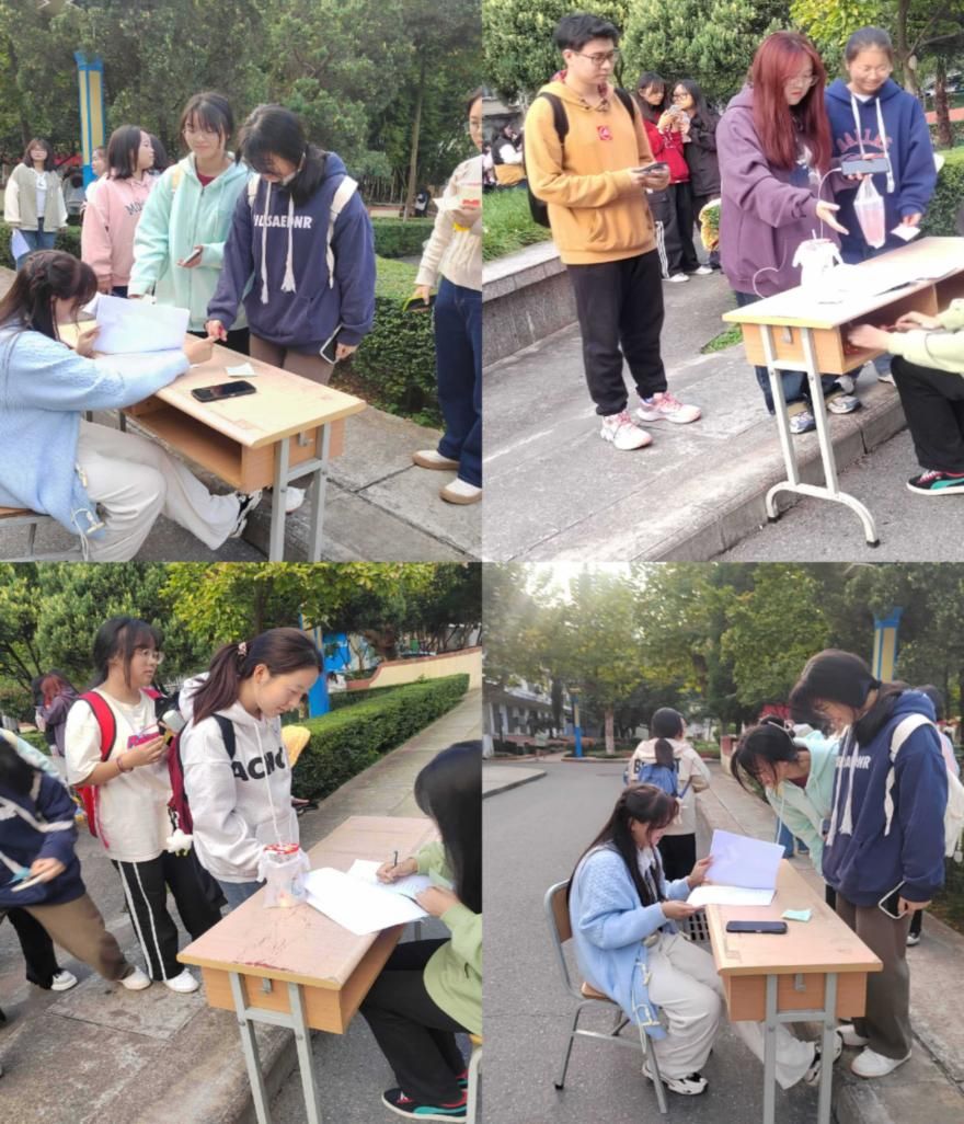 在主持人的激扬陈词下,本次英语角拉开了序幕。主持人介绍本次主题,围绕中华成语中译英的形式,以及英语俚语中的英译中的形式开展。其涉及成语均展示了中华文明在各个领域的优秀语言成果,具有鲜明的民族性。趣味游戏环节中,同学们积极参与,在小花园中寻找事先藏好的俚语小纸条,紧接着以个人战或小组合作的方式,不断找到最地道的翻译方式,回答正确则可以在主持人处领取小奖品。活动中同学们不断开拓思路,探索创新,结合自身的专业技能和特色优势,在活动中提升自己的各方面能力。在Free Talk环节,邀请同学们分享自己在翻译过程中的经验和体会。同学们表示“在翻译的过程中,更加感受到了语言文化的博大精深,加深了对成语的理解”;“我以前完全不知道dog在不同语境中还有这么多不一样的意思,现在越来越觉得英语学习有趣了!”