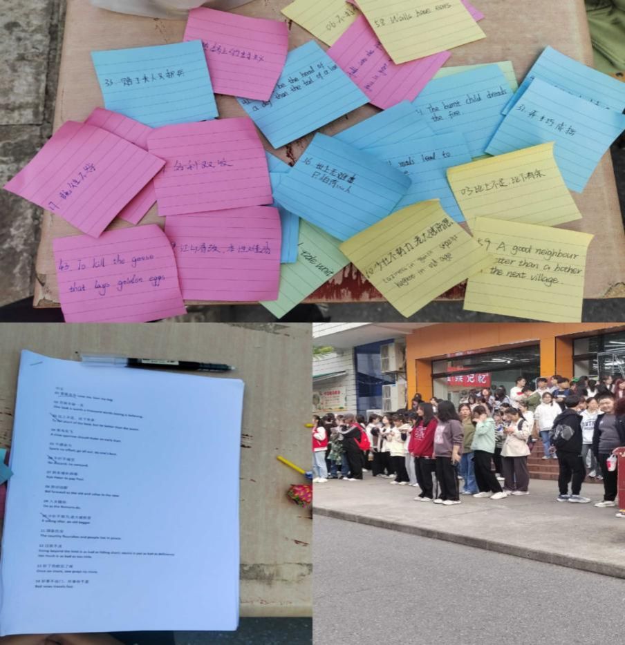 成语是中国传统文化的一大特色,也是中华文化中一颗璀璨的明珠。英文中的俚语在西方文化中也具有独特意义的语言符号。此次活动深入学习贯彻了党的二十大精神以及习近平总书记给留学归国青年学者回信中提出的“在坚定文化自信、讲好中国故事上争做表率”的重要指示精神,还增强同学们对语言文化的了解和民族自豪感。