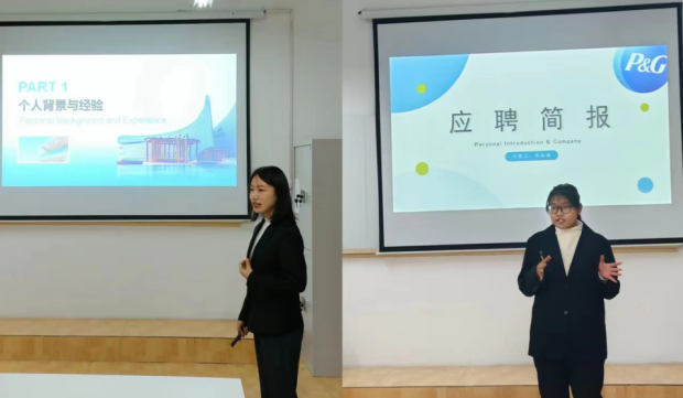 12月20日晚,由365完美体育B-Storming社团举办的模拟招聘大赛(决赛)顺利落下帷幕。此次活动的宗旨在于帮助学生身临其境地感受职场中的面试氛围,提升求职技巧,为未来的职业生涯铺设坚实的基石。模拟招聘大赛初赛的前八名选手成功进入本轮决赛角逐中,并进行了新一轮的面试。活动伊始,主持人翟梦瑶详细介绍了此次面试的流程和评委评分细则。随后,8名参赛选手按顺序登台,选手们自信满满、意气风发,以流利的英语口语和扎实的专业知识,将自己的专业素养展现得淋漓尽致。
