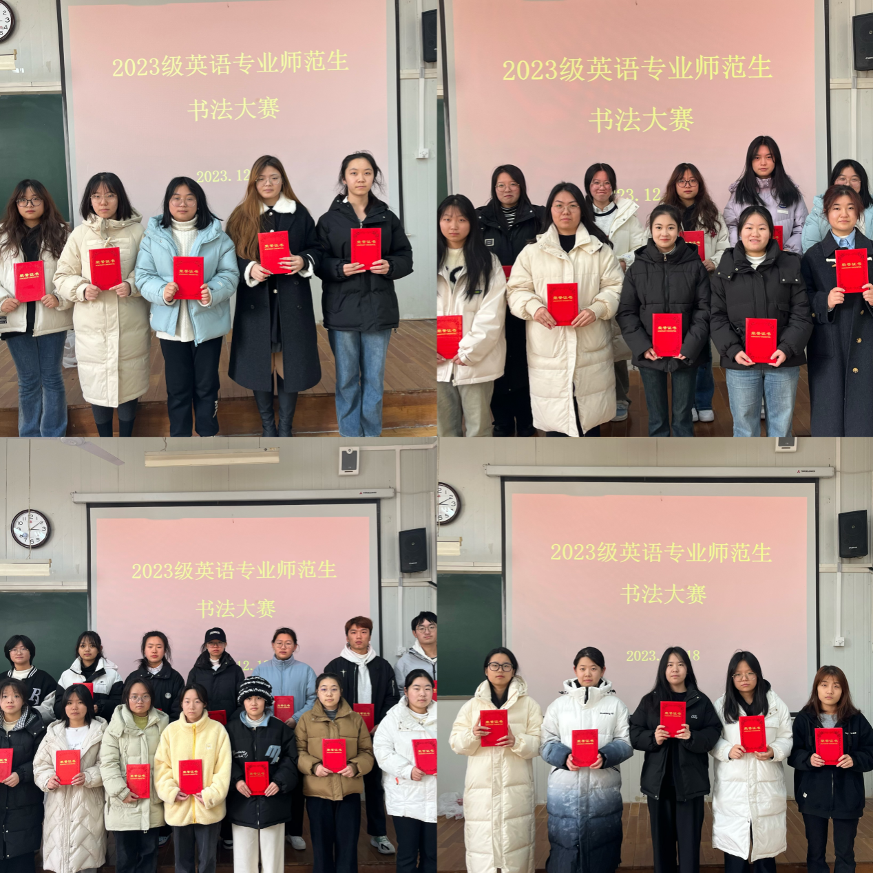 为提升我院学生英语书写能力,激发英语学习兴趣,丰富课余生活,12月18日365完美体育在6048教室举办了英语书法大赛。评委由教师教育团队的教师们组成。