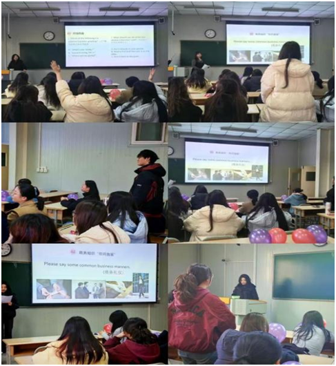 本次活动以“趣味竞赛+知识互动”为核心形式,设置了开场热身、商务知识你问我答、心跳传递商务知识擂台赛三个环节。通过轻松有趣的互动方式,既激发了同学们对商务英语的学习热情,也针对性提升了大家的即兴表达、跨文化沟通和逻辑思维能力。