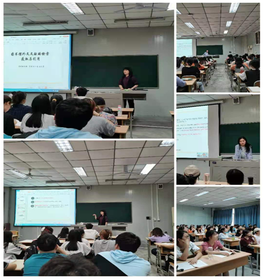 讲座上,两位老师主要从文献检索概述、中文数据库检索、外文数据库检索等方面进行了细致讲解,向学生介绍了英文检索的主要方式,为大家提供了条理清晰的文献检索思路方法,通过案例提出了一系列文献查阅的技巧。同时还介绍了知网、万方及读秀等专业且便捷的渠道,普及了学生关于论文检索结果的筛选、评价等知识。