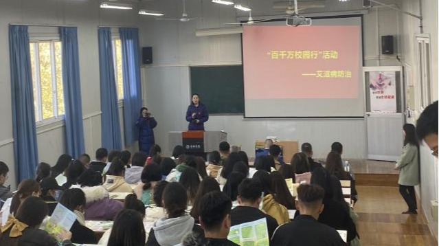 肖红香首先对开展本次活动的目的对同学们进行说明,在学校开展艾滋病防治知识宣传“百千万校园行”系列活动的重要意义,强调世界艾滋病日是为了提高公众对艾滋病的认识,共同对抗艾滋病在全球传播,呼吁全校师生要加强艾滋病防治知识学习,提高自我防护能力;同时做一个防艾宣传员,向身边的家人、朋友、同学积极宣传防艾知识,正确对待、科学预防艾滋病,关心平等对待艾滋病患者。