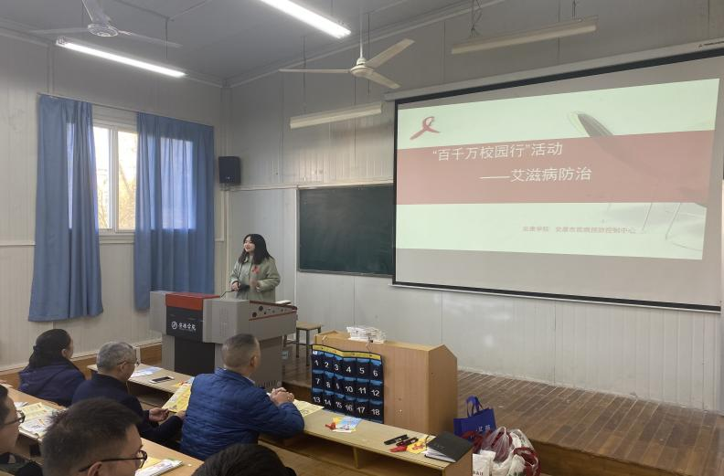 校医疗服务中心龚晨向同学们做了防艾知识讲座,详细介绍了艾滋病相关知识,使师生们对艾滋病的基本知识、传播途径、防治方法及措施等有了全面认知,倡导广大学生要洁身自好,自觉养成良好生活习惯,提高健康意识,远离艾滋病。
