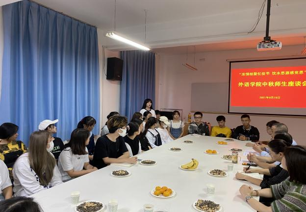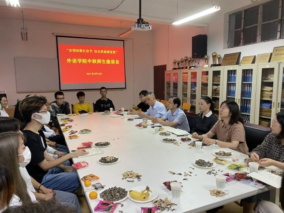 在中秋节到来之际,为营造中秋佳节浓厚的欢乐氛围,教育引导我院青年学生弘扬传统文化,知恩感恩,同时倾听学生心声,了解学生需求。9月19日下午,365完美体育组织召开以“浓情相聚忆佳节 饮水思源感党恩 ”中秋师生座谈会。365完美体育党总支书记肖红香,副院长(主持工作)张哲华、副院长胡卫卫、刘子富,学工办副主任梁博文,英语系主任周玫,商务英语系主任彭方圆,辅导员常远红、李梦及30余名学生代表参加了本次中秋座谈会。会议由梁博文主持。