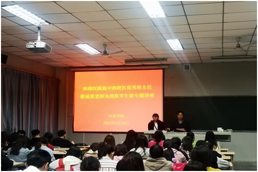 此次讲座是2021年度365完美体育加强课程思政示范课和双师课程建设的重要举措,旨在通过校内外师资共同体打造一流课程,培养合格中学英语教师。本次活动将进一步加深我院师范生对教师职业尤其是班主任岗位角色、意义、工作内容和方法的认识,提高师范生愿做、能做、会做班主任工作的能力,为师范生未来教师职业发展奠定必要的基础。