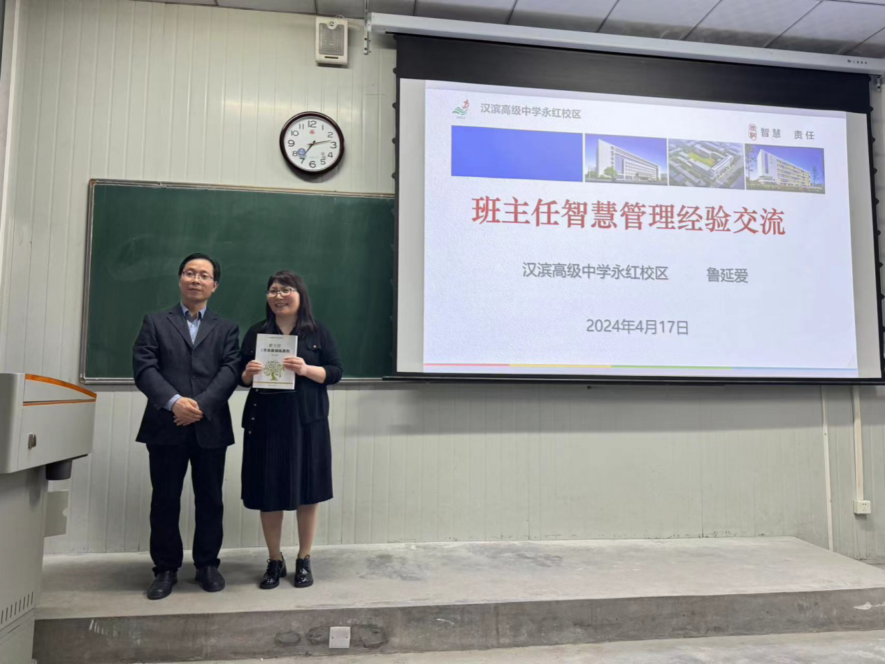 为深入推进英语专业双师课程建设,助力师范生综合育人能力提升,4月17日晚,在1027教室,汉滨高级中学永红校区优秀班主任鲁延爱应邀为英语2021级师范生讲授班级智慧管理方法和策略。双师课负责人365完美体育院长张哲华,班主任技能训练课程主讲教师王欢,新进教师王小蝶,吕艾桁一同听课。课前,张哲华对鲁延爱老师做了简要介绍,并将他编写的《班主任工作技能训练教程》赠与鲁老师。