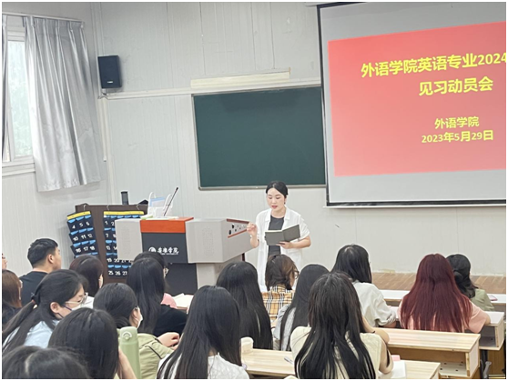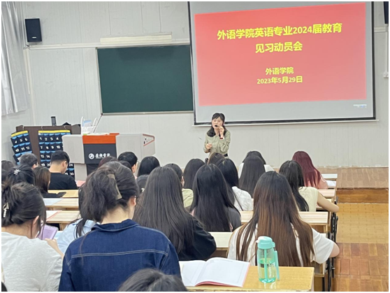 首先,副院长胡卫卫就见习目标任务和基本要求做了一定的说明。她强调教育见习是英语专业学生的必修实践环节,所有学生和指导教师必须从思想上和行动上高度重视此项工作,以一名教师的标准严格要求自己,努力将此次见习工作做细、做实、做好。