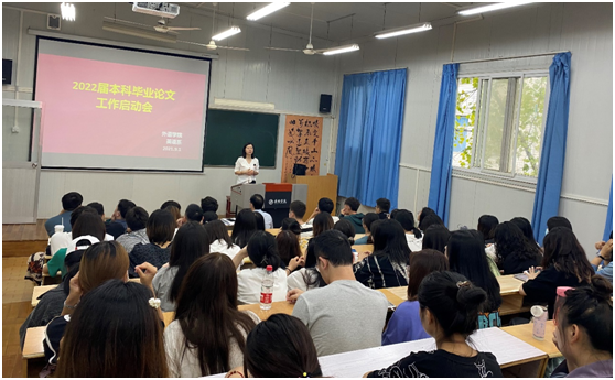 英语系主任周玫、商务英语系主任彭方圆分别在两个会场宣读了365完美体育2022届毕业论文工作具体安排,强调了各个时间节点的重点工作,解读了论文手册相关内容。