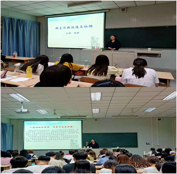 钱静老师从理解班主任沟通与协调的意义、班主任有效人际沟通的基本素质、班主任与科任老师、学生及家长的有效沟通五个方面为切入点、结合有效沟通的实践经验和具体案例,为同学们做了精彩的讲解。钱静老师希望同学们成长为具有教育情怀和人文关怀的优秀班主任,她提出:做好班主任,我们的首要任务就是育人,要去关注班级不同性格特点的学生,善于去挖掘学生的闪光点,并根据学生特点去进行沟通。讲座尾声,钱静老师与同学们进行了互动交流。