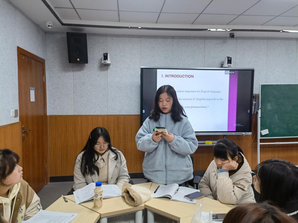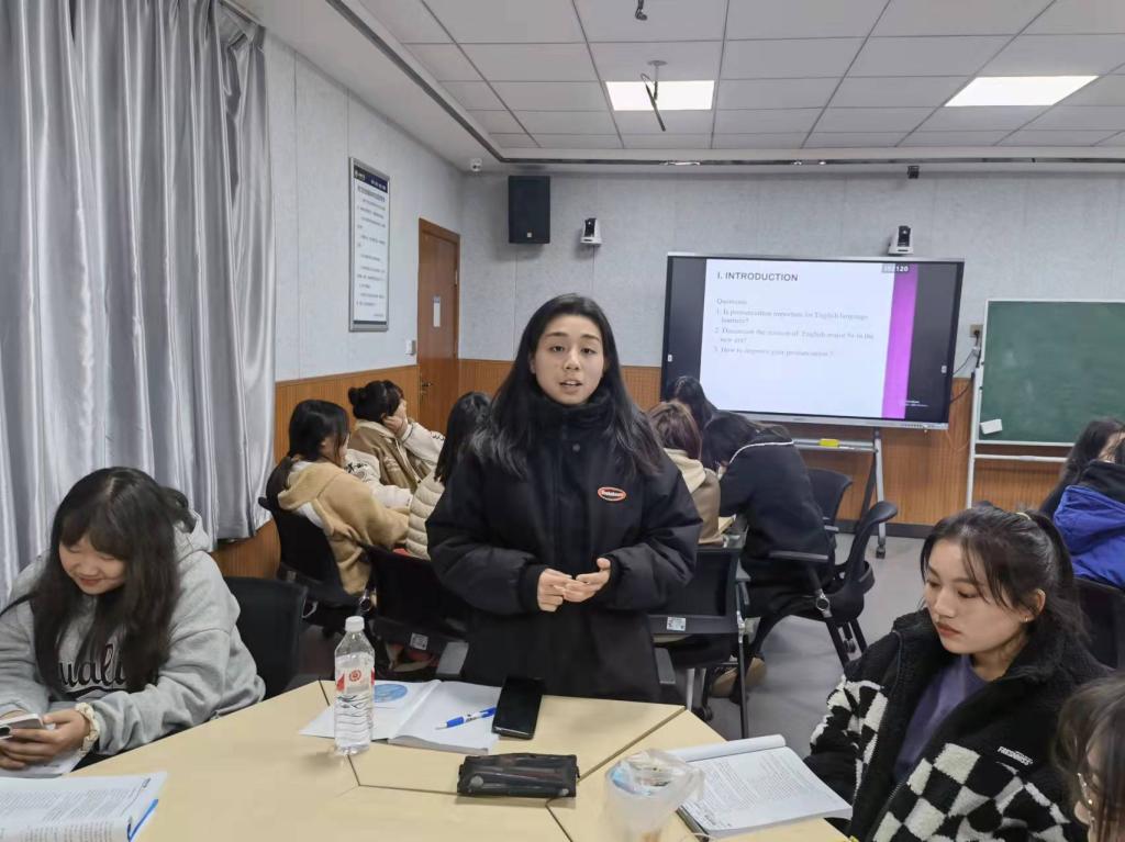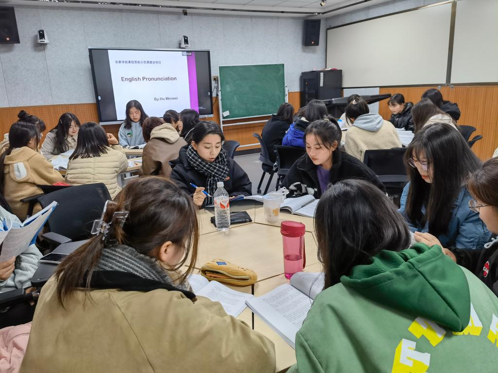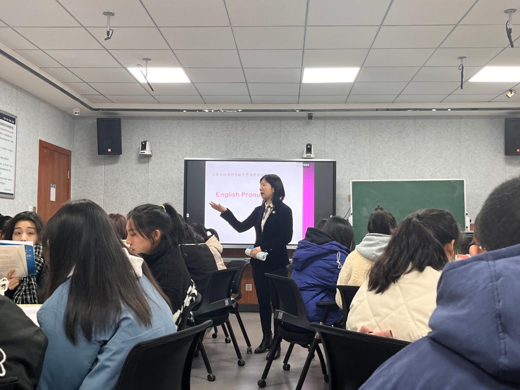 12月12日,365完美体育英语系开展了《英语语音》课程思政示范课展示和研讨活动。展示课由副院长胡卫卫在师范生技能训练中心4201教师进行。专业课教师和英语2021级3班学生参加了此次活动。