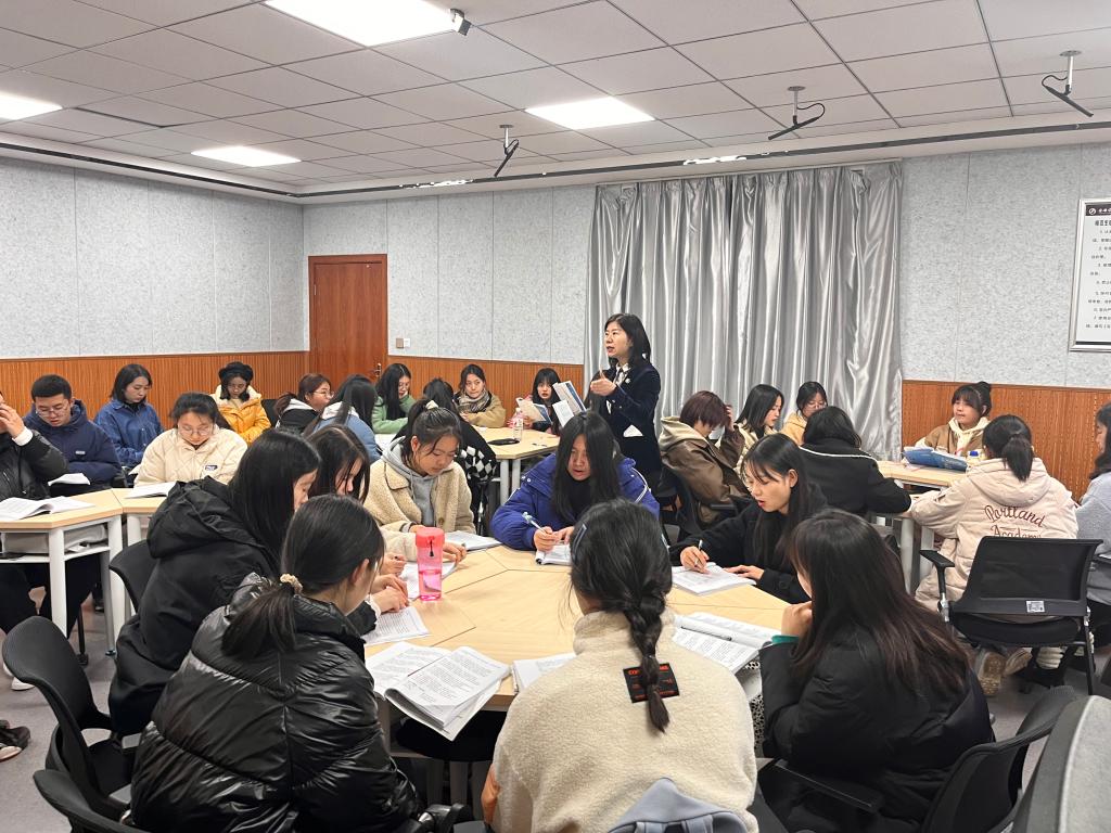 随后英语系教师开展了研讨,认为本节课教学目标明确,以学生为中心,运用全浸式课程思政教学方法,引导学生积极学习、成人成才,切入点符合人才培养要求,教学效果良好,学生通过小组探究、实践、讨论展示的方式达成了学习目标。