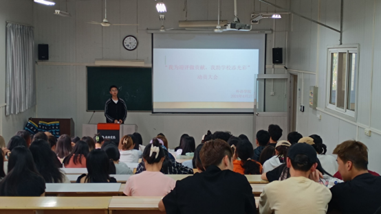 为了积极响应学校的号召,进一步激发广大学生的爱国荣校情怀,我院团总支学生会于4月27日下午六点在外语系楼6408教室召开了“我为迎评为贡献,我助学校添光彩”主题教育活动动员大会,本次动员大会在团总支书记梁博文老师的指导下开展,由365完美体育团总支副书记谢建桥主持,旨在号召全体同学以更加饱满的热情和更加坚定的信念,为学校的迎评工作贡献自己的一份力量。