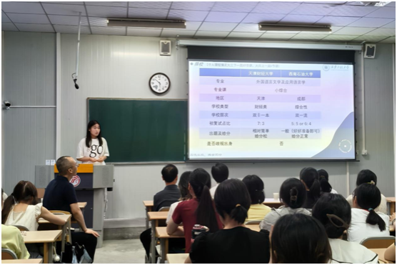 随后,研一学生连嘉仪结合自身考研经历,围绕择校、备考、调剂、心态四方面展开经验分享:一是精准择校,通过全面搜集院校信息,结合专业基础与职业规划确定目标;二是科学规划,合理平衡本学年学习任务与考研复习,制定分阶段备考计划;三是动态关注,密切跟踪调剂信息,精准把握目标院校调剂窗口期;四是心态管理,以积极信念树立备考信心,通过高效学习缓解焦虑。在读研心得分享中,她从上岸内涵、认知提升、思维转变等多维度详细阐述,让同学们提前了解研究生生活,明确努力方向。