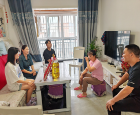 肖红香一行深入乡镇、山区和农村,走进学生家庭,与学生和家长亲切交谈,询问了学生的家庭生活状况、健康情况、收入来源,详细了解了学生家庭生活和经济状况以及存在的主要困难,向学生家长宣传了国家和学校资助政策,反馈了学生在校的学习、向家长和学生送去了学校的问候和关怀。