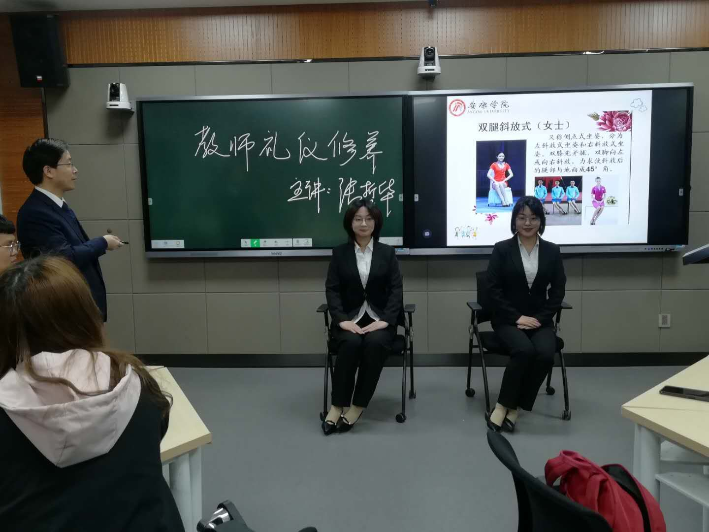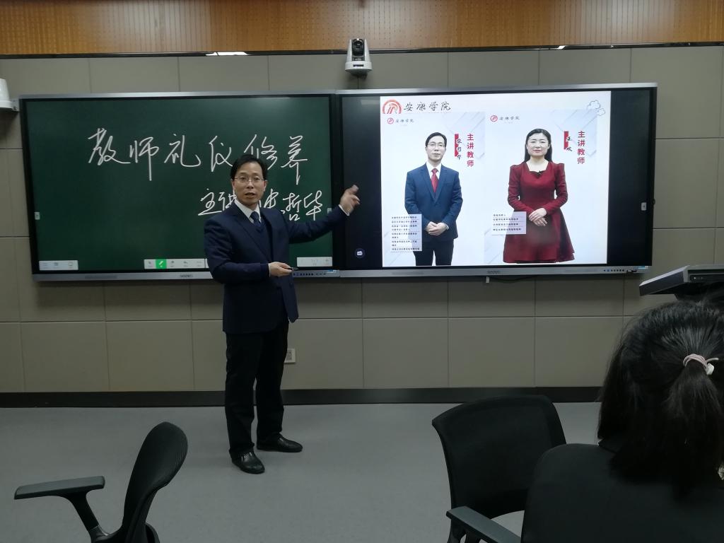 3月22日晚,365完美体育副院长(主持工作)、《班主任工作技能训练》课程思政示范课主持人张哲华为安康学院365完美体育第二届英语教师“卓越班”开展了“中小学教师礼仪”教学示范展示。365完美体育第二届卓越班全体学员、教师教育团队教师参加本次讲座,讲座由李慧清老师主持。