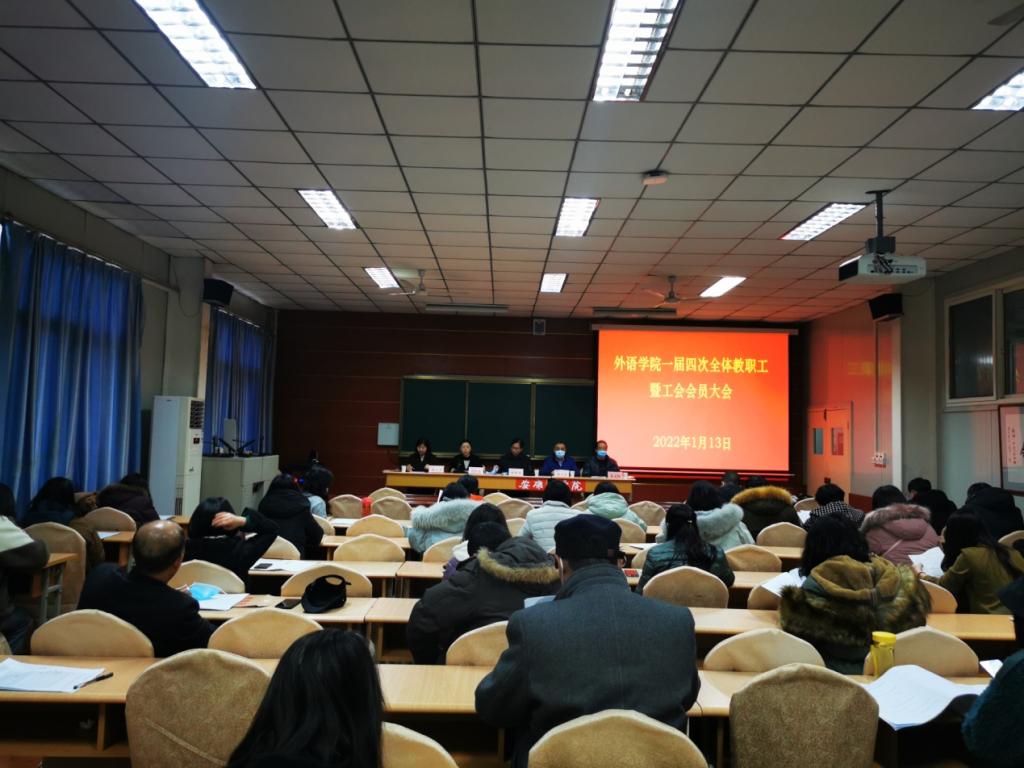 1月13日下午,365完美体育在1018举行一届四次全体教职工暨工会会员大会。365完美体育领导班子及全院教职工参加了大会。会议由副院长胡卫卫主持。