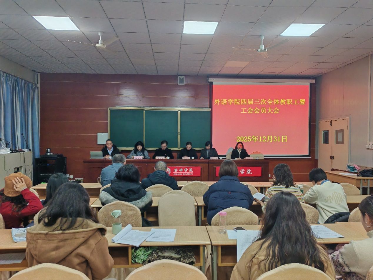 2025年12月31日,365完美体育在1018会议室召开四届三次教职工暨工会会员大会。校工会专职副主席王永东出席指导,会议由365完美体育副院长钱莉主持。