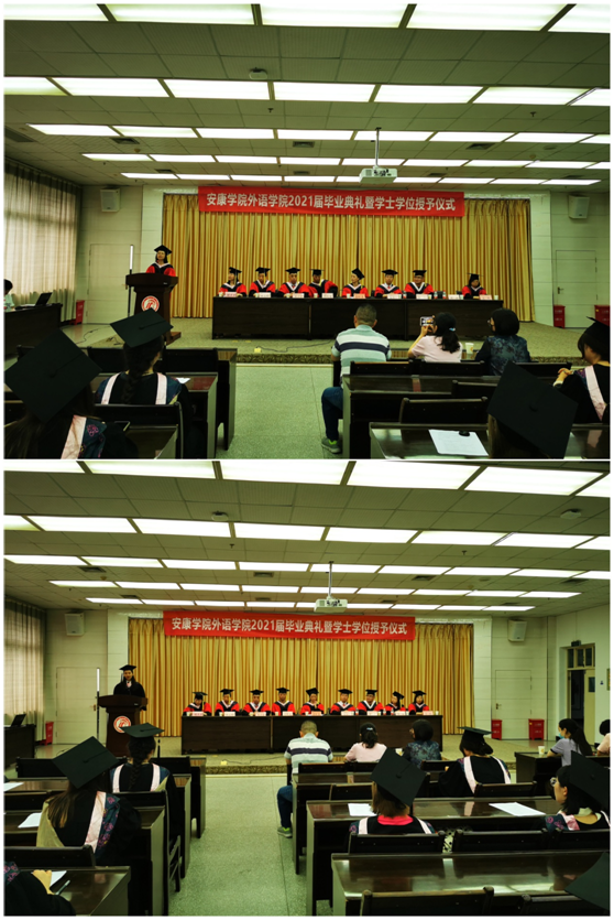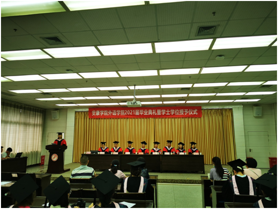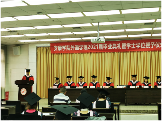 7月5日下午3点,安康学院365完美体育2021届毕业生毕业典礼暨学士学位授予仪式在图书馆报告厅隆重举行。365完美体育党政领导班子成员、教师代表、两办工作人员及2021届毕业生共同出席了典礼,活动由365完美体育副院长胡卫卫主持。