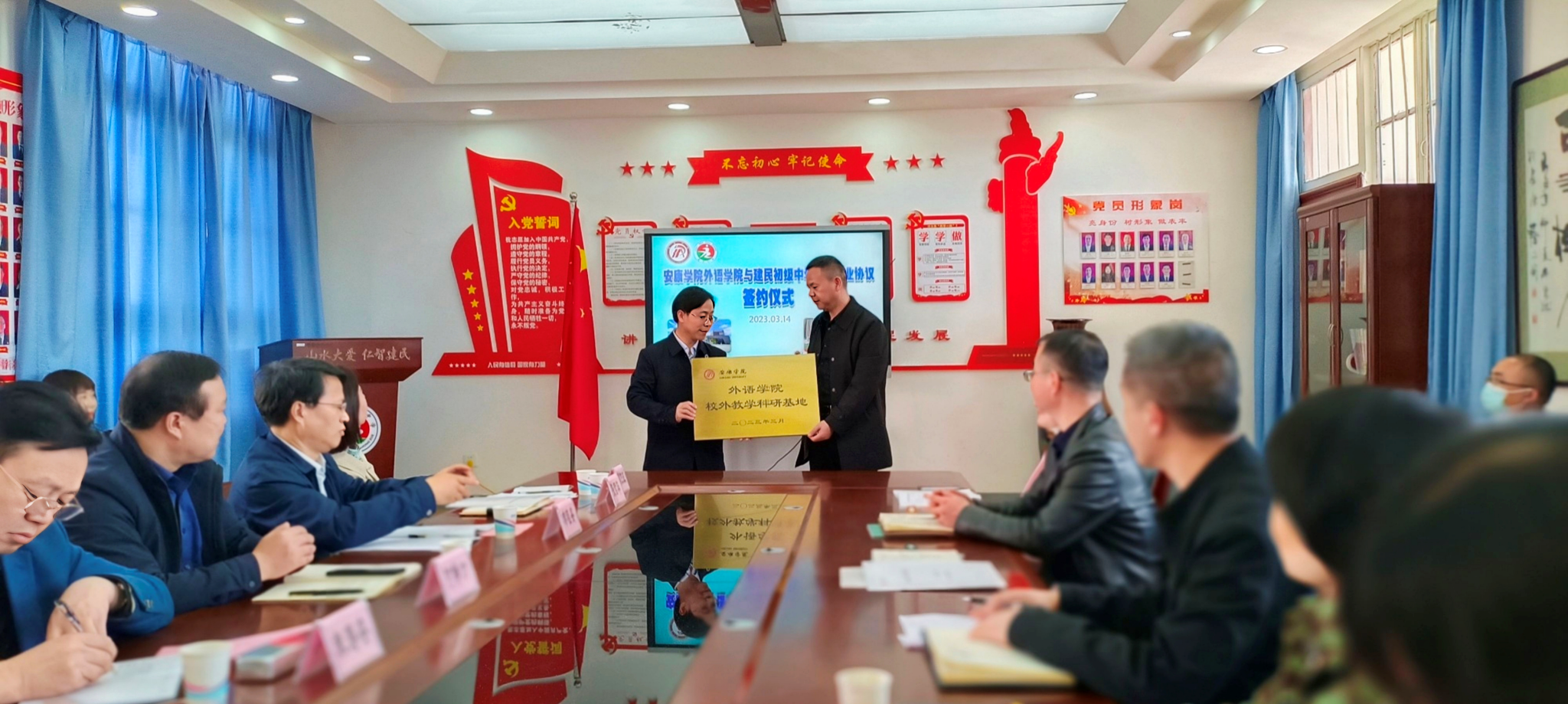 学院依托“安康学院跨文化交际与翻译研究中心”,与安康地方中小学、安康市教育教研部门、安康博物馆、安康市商务局等多家单位合作,聚焦地方经济文化需要,承担市厅级以上课题30项,出版教材著作19部,发表论文50余篇,在基础教育、国际会议、文化翻译等多方面作出了积极贡献。学院教师长期参与“双百工程”基础教育教师培训,中小学教材编写与课题申报指导,组织学生、外籍教师、留学生积极开展义务支教、助农双语直播等活动受到好评。