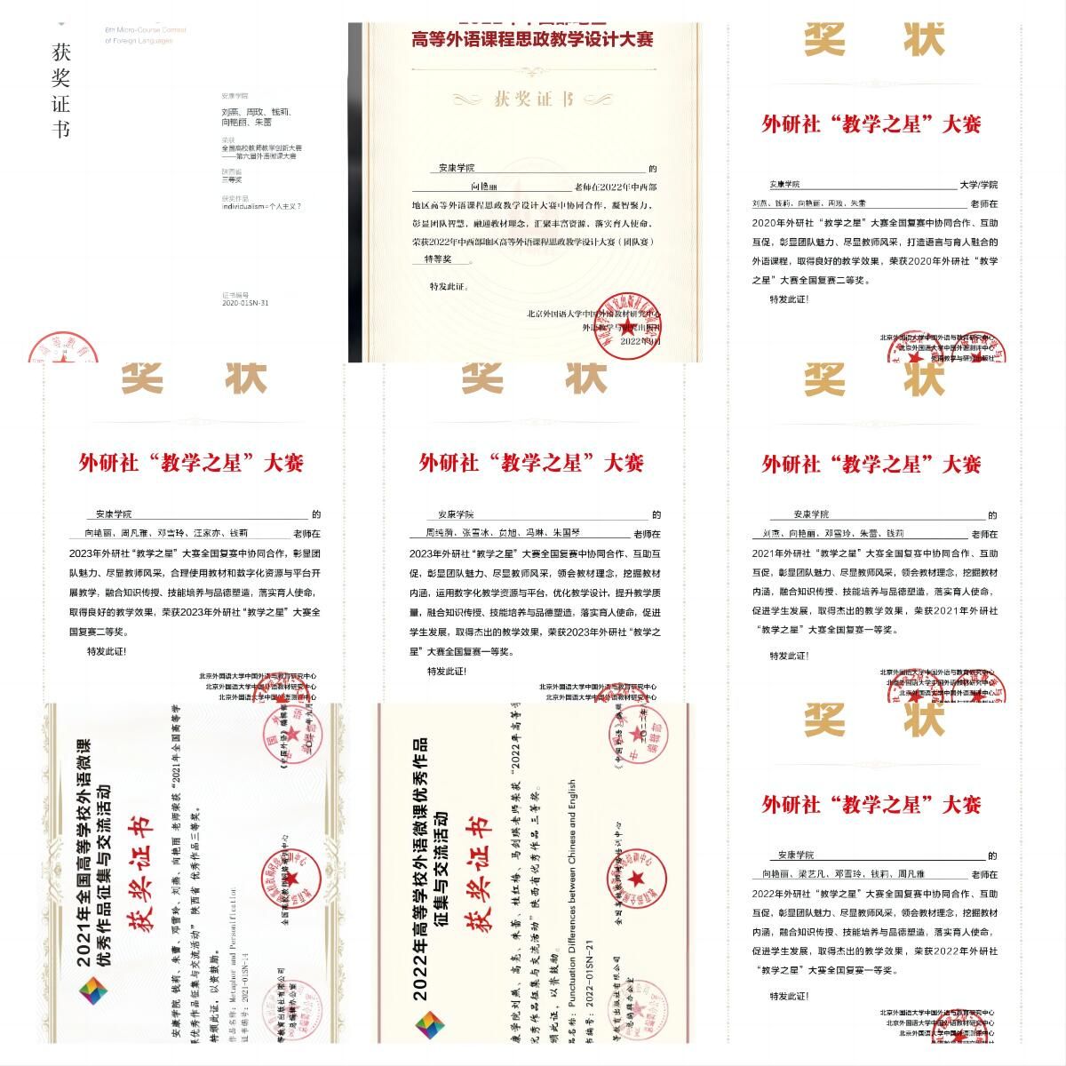 学院现有教职工46人,90%以上教师具有博硕士学位,其中高级职称12人,博士10人(含在读),兼职硕士研究生导师6人,双师型教师17人,长期聘请英语外教、行业企业兼职教师参与人才培养。近五年,教师荣获省级以上教学成果奖、优秀教材奖、优秀论文奖8项,获批省级一流课程3门,30余名教师获外研社“教学之星”全国大赛、中国外语微课大赛、全国高校英语教师教学基本功大赛等一二三等奖。