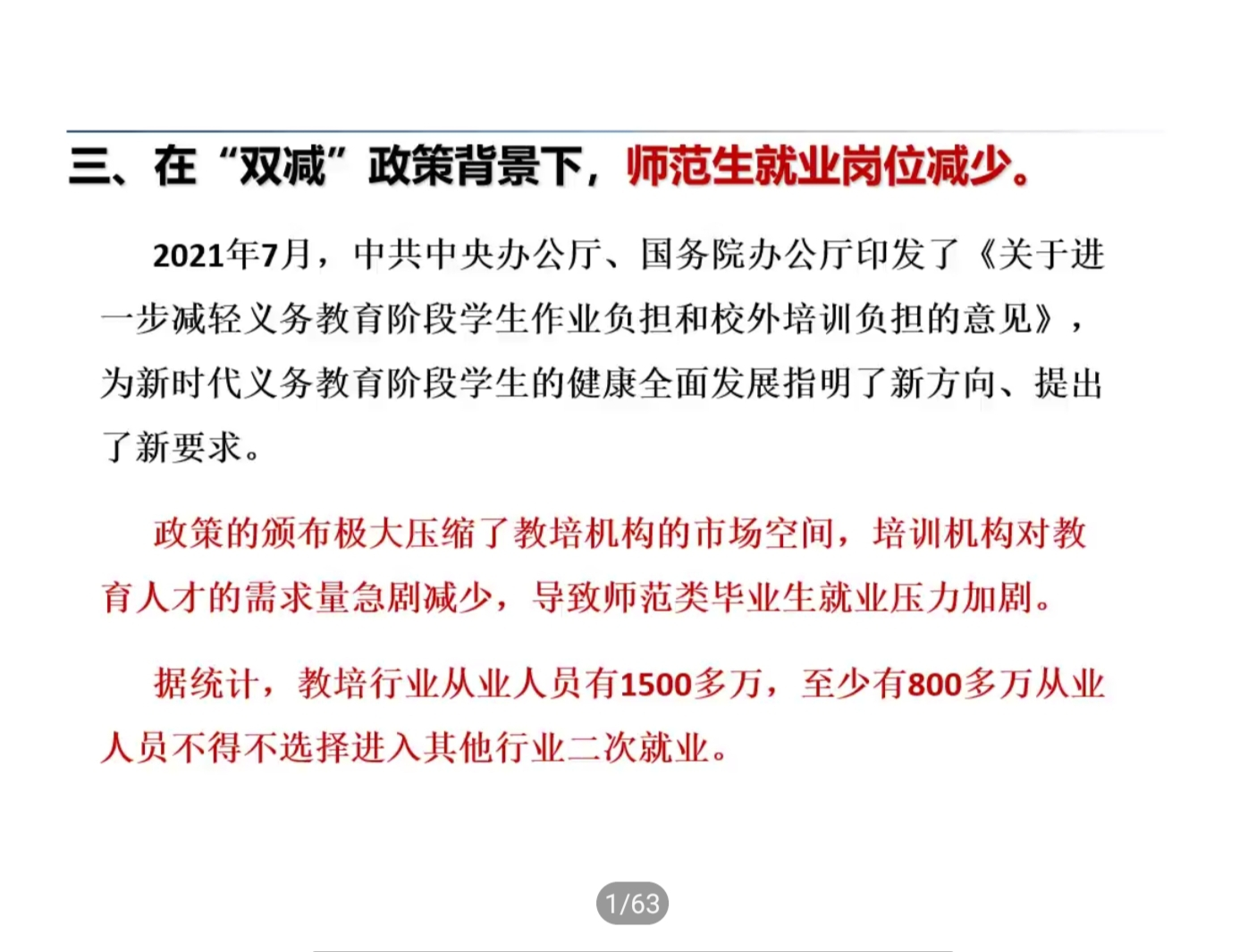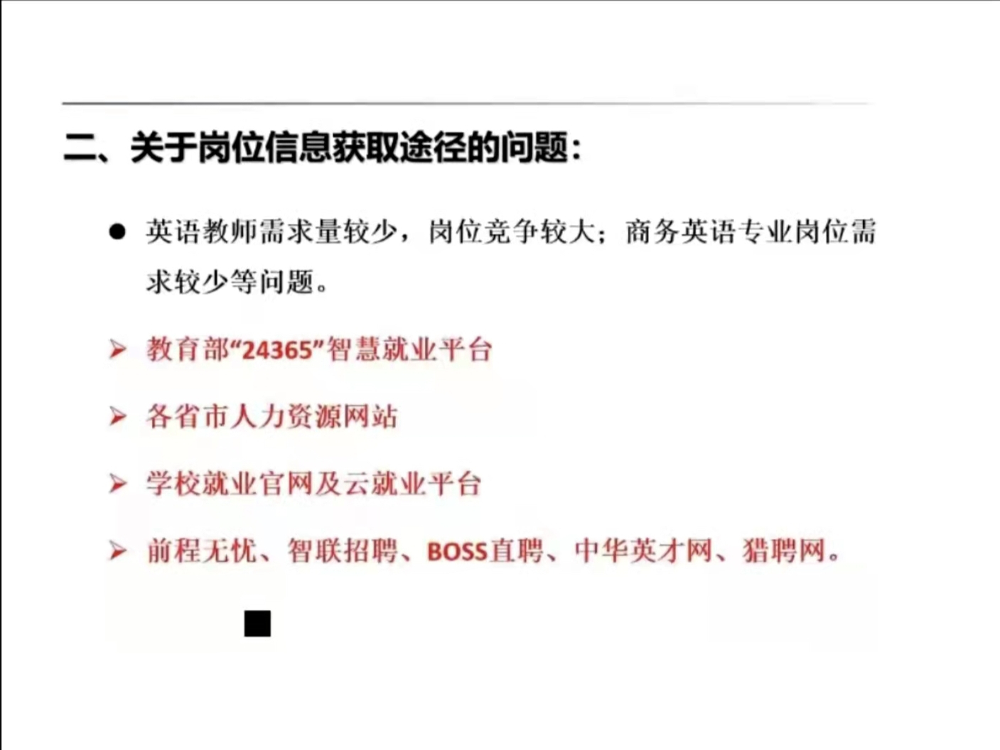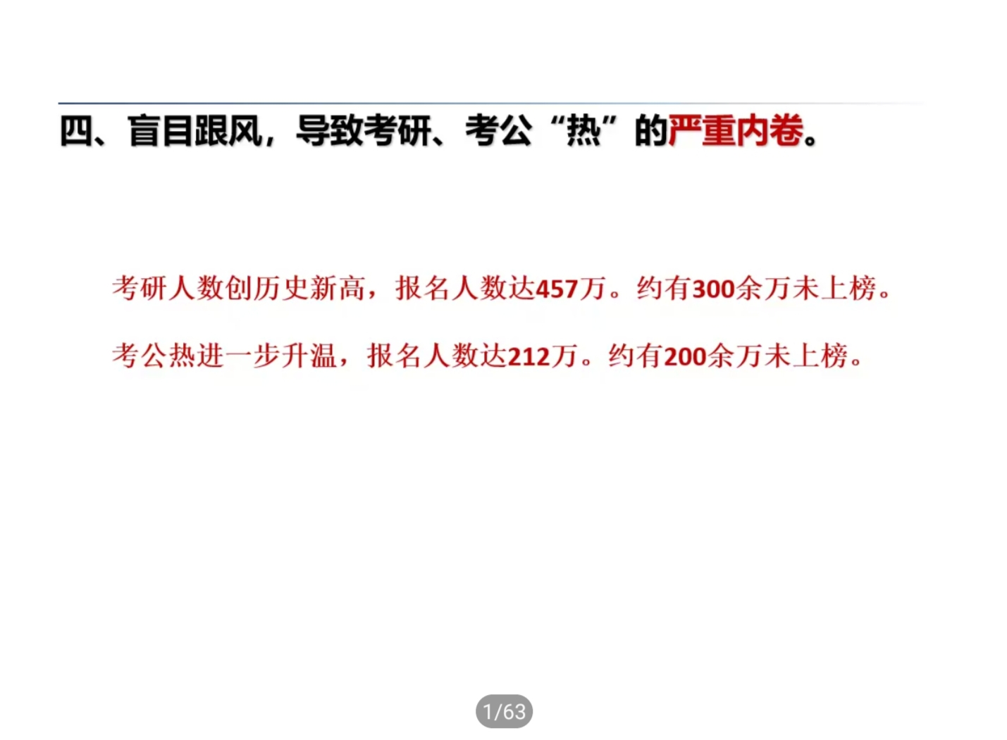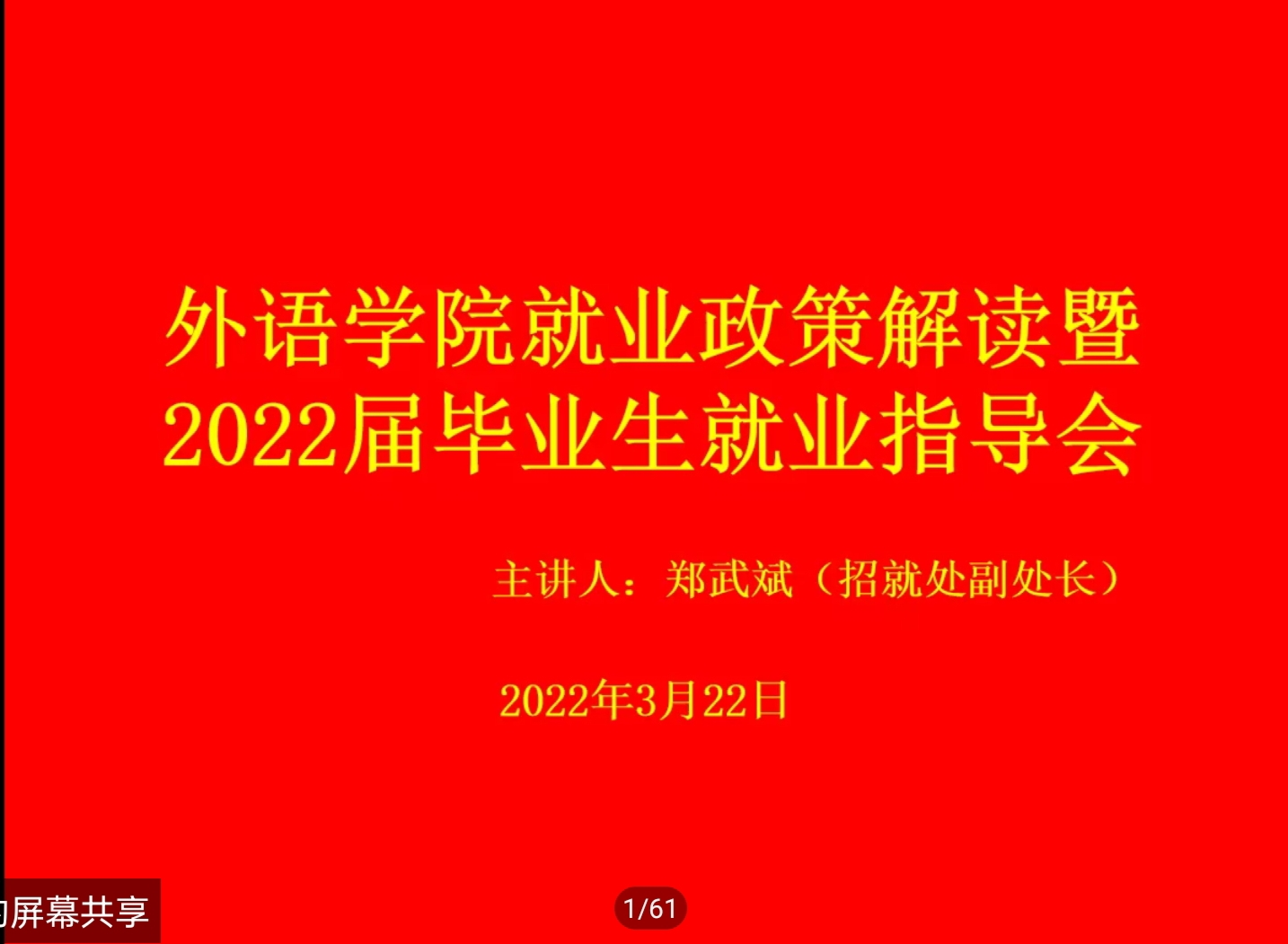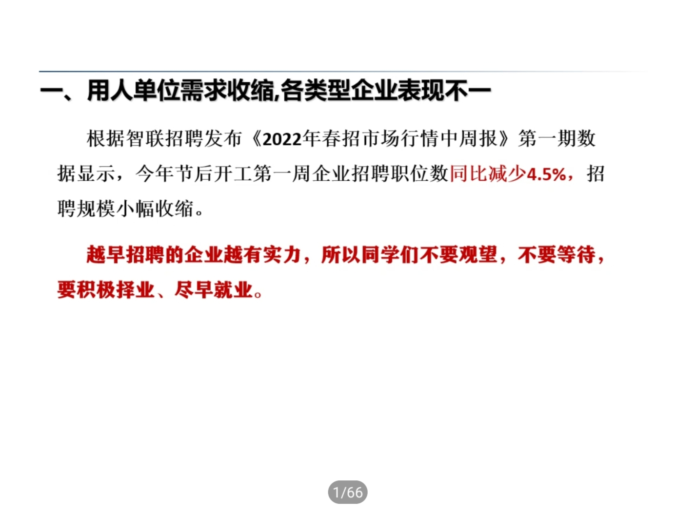 会上,郑武斌在2022年就业形式分析中指出,当前毕业生就业形势严峻复杂,受疫情影响和“双减”政策双重影影响,供需对接难度不断加大,人才市场的供需情况表现出,用人单位需求收缩,各类企业表现不一,师范生就业岗位减少,盲目跟风考研、考公“热”导致内卷严重,传统的线下招聘转变为以线上主阵地和线下招聘同时进行的招聘方式,都将对今年毕业生就业带来了空前的难度和挑战,建议毕业生了解现状并结合个人情况进行判断和选择,积极主动参加各类线上和线下招聘会。