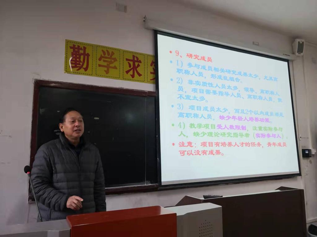 报告伊始,刘子富介绍了赵临龙教授的基本情况。赵教授是陕西省教学名师,也被评为陕西省“特支计划(教学名师)”,2020年当选陕西省百姓学习之星。长期以来,赵临龙教授秉承“艰苦创业、团结奉献、守正创新、追求卓越”的安康学院精神,在科研和社会服务工作中都取得了丰硕成果,是青年教师学习的榜样。在报告中,赵临龙教授总结回顾了自己科研工作发展道路,通过典型案例,从教科研项目申报的选题、研究过程管理,到如何准备项目结题验收等方面,为我院全体教师进行了全面指导和广泛分享。