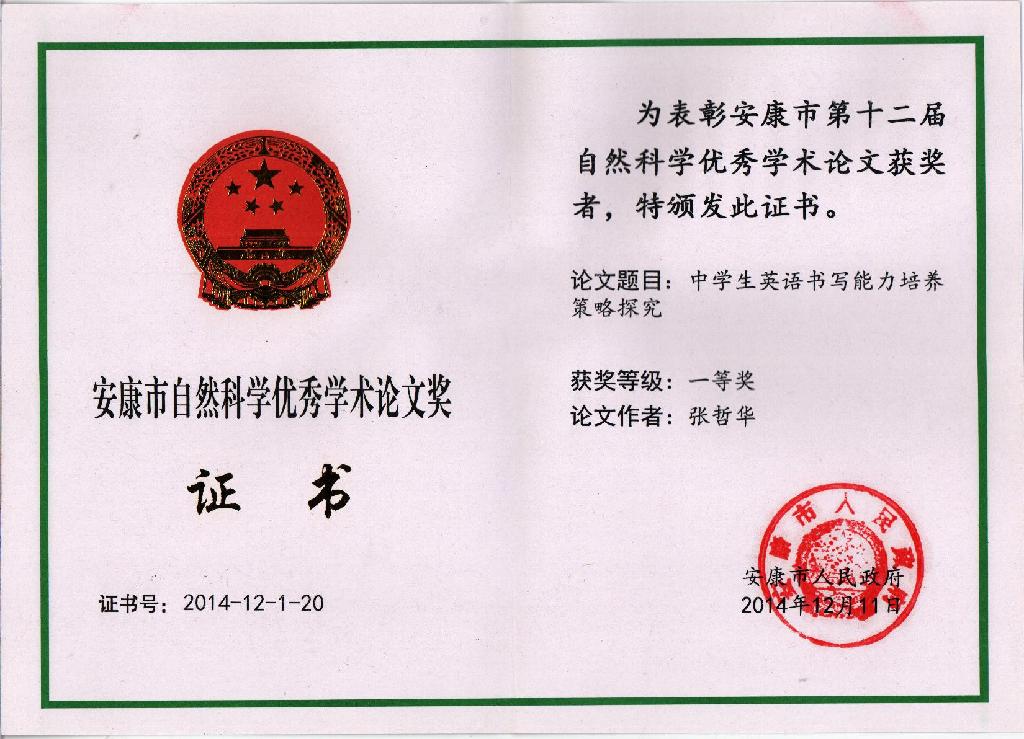 365完美体育教师论文获安康市政府一等奖