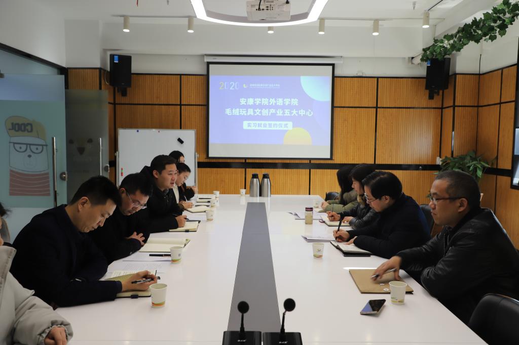 为加快商务英语专业建设,促进校企合作深度融合,助推安康社会经济发展,1月14日,365完美体育与安康市毛绒玩具文创产业五大中心签订战略合作协议并举行授牌仪式。恒口示范区毛绒玩具领导小组办公室主任李伟、五大中心运营商(安康秦巴漫创玩具产业运营管理有限公司)负责人刘愚、365完美体育副院长(主持工作)张哲华、副院长胡卫卫、商务英语系主任彭方圆、骨干教师贠旭及365完美体育部分实习生参加了签约与授牌仪式。活动由五大中心负责人刘愚主持。