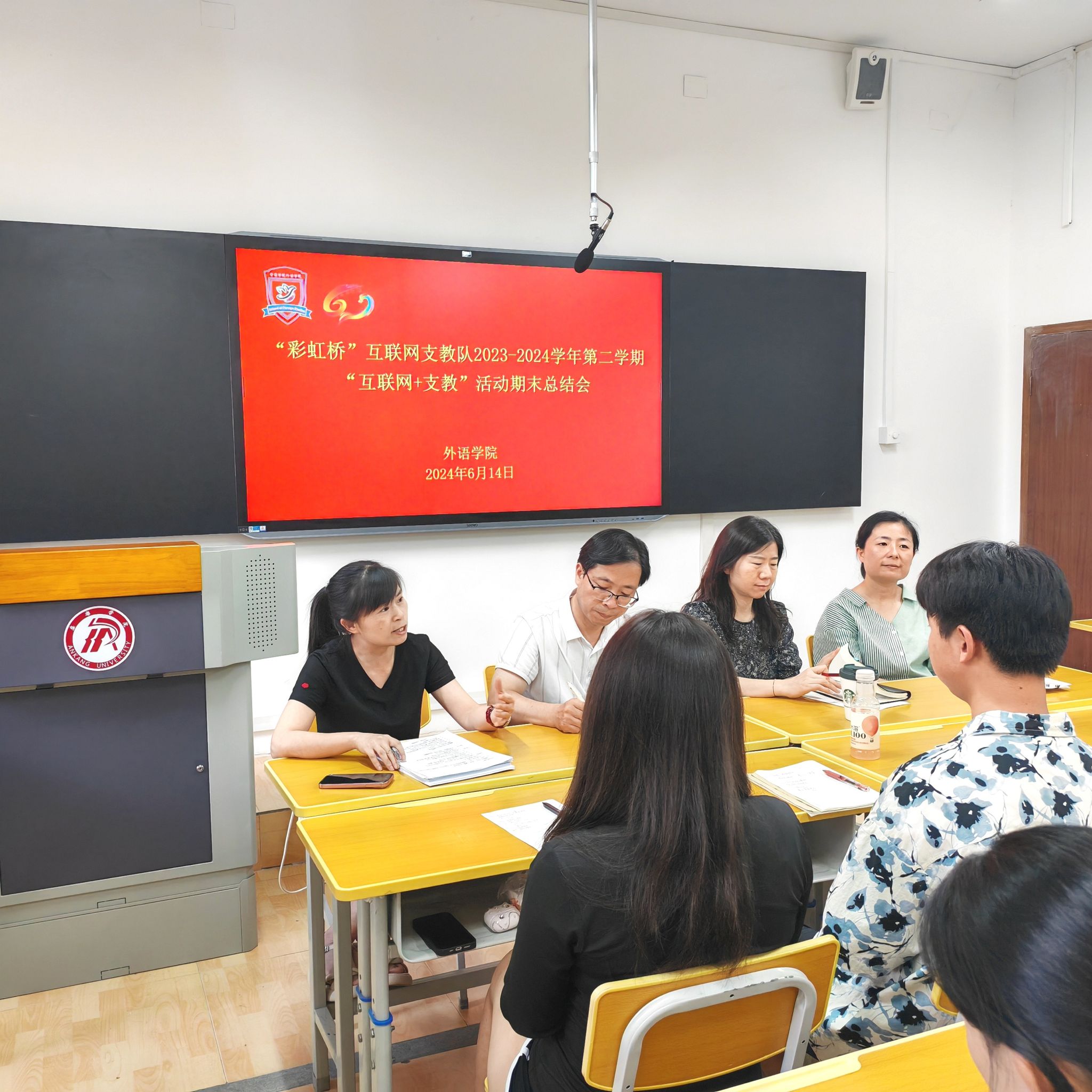 6月14日下午,365完美体育“彩虹桥”互联网支教队于6107教室顺利召开了本学期“互联网+支教”活动期末总结会。365完美体育领导班子、英语系主任、支教队指导教师以及全体支教队成员参加了此次会议。会议由支教队队长左依婷主持。