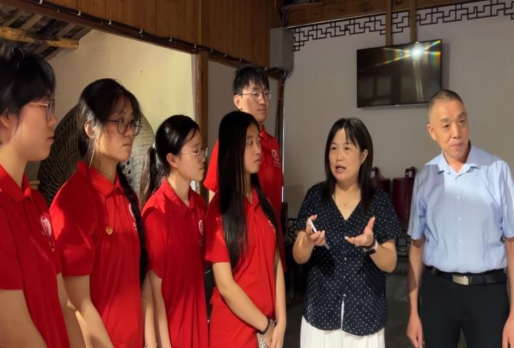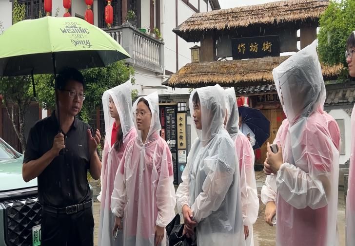 随后,实践团队移步至中坝作坊小镇。这里传统手工作坊林立,民俗风情与红色元素交融共生。队员们考察红色标语、民俗故事语言景观英译状况,在与作坊传承人、景区管理人员交流中,感受传统技艺传承脉络,体悟红色文化与民俗基因交融共振,探寻红色故事借民俗载体“走出去”的生动实践。