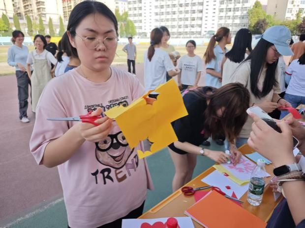 随后,活动正式拉开序幕。本次心理游园会包含“幸福心体验”“齐心向前进”“唱响心乐章”“拒绝心焦虑”“挑战心默契”五个部分,围绕感恩、互助、美好、乐观、协作五个关键词,通过丰富多彩的活动形式和内容,为学生搭建互动交流平台,让学生在趣味活动中释放压力、收获温暖,为心理健康“充电续航”。