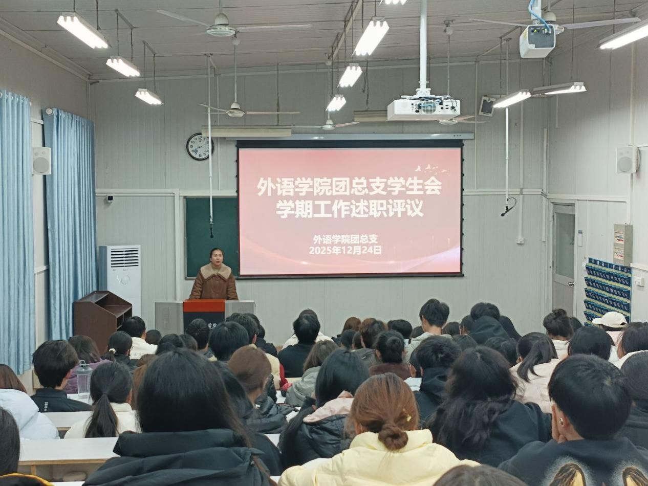 最后,孟莉对全体团总支学生会干部本学期的辛勤付出与显著成效给予充分肯定。她强调,学生骨干是学院联系广大同学的桥梁纽带,是推动学院发展的重要力量,希望大家以此次述职为契机,进一步强化责任担当与使命意识,并提出三点要求:一是坚守服务初心,主动担当作为,摒弃“等安排、靠指令”的被动心态,以实际行动服务同学;二是锚定能力提升,增强工作实效,将外语专业优势与团学工作深度融合,锤炼组织协调、沟通表达等核心素养;三是深化协同联动,凝聚工作合力,树牢“一盘棋”思想,打破部门壁垒,实现资源互补、工作同频。