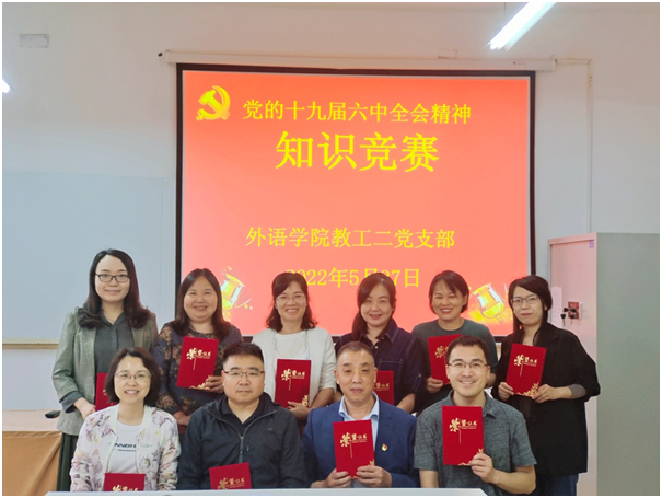 首先,党支部书记刘子富同志带领全体党员集中学习了《中国共产党第十九届中央委员会第六次全体会议公报》相关内容,为全面贯彻落实党的十九届六中全会精神奠定扎实基础。在讨论交流环节中,大家紧密围绕坚持“两个确立”,不断增强“四个意识”、坚定“四个自信”、坚定不移做到“两个维护”等方面进行了较为深入的交流,并结合个人的工作岗位职责进行深刻剖析,为大学英语教学改革工作的发展增加了新的推动力。在稍后举行的党的十九届六中全会精神学习知识竞赛中,大家充分展示了各自的学习成果和未来发展规划,李继平、陈小红、刘燕等多位同志以优异的成绩在比赛中脱颖而出。