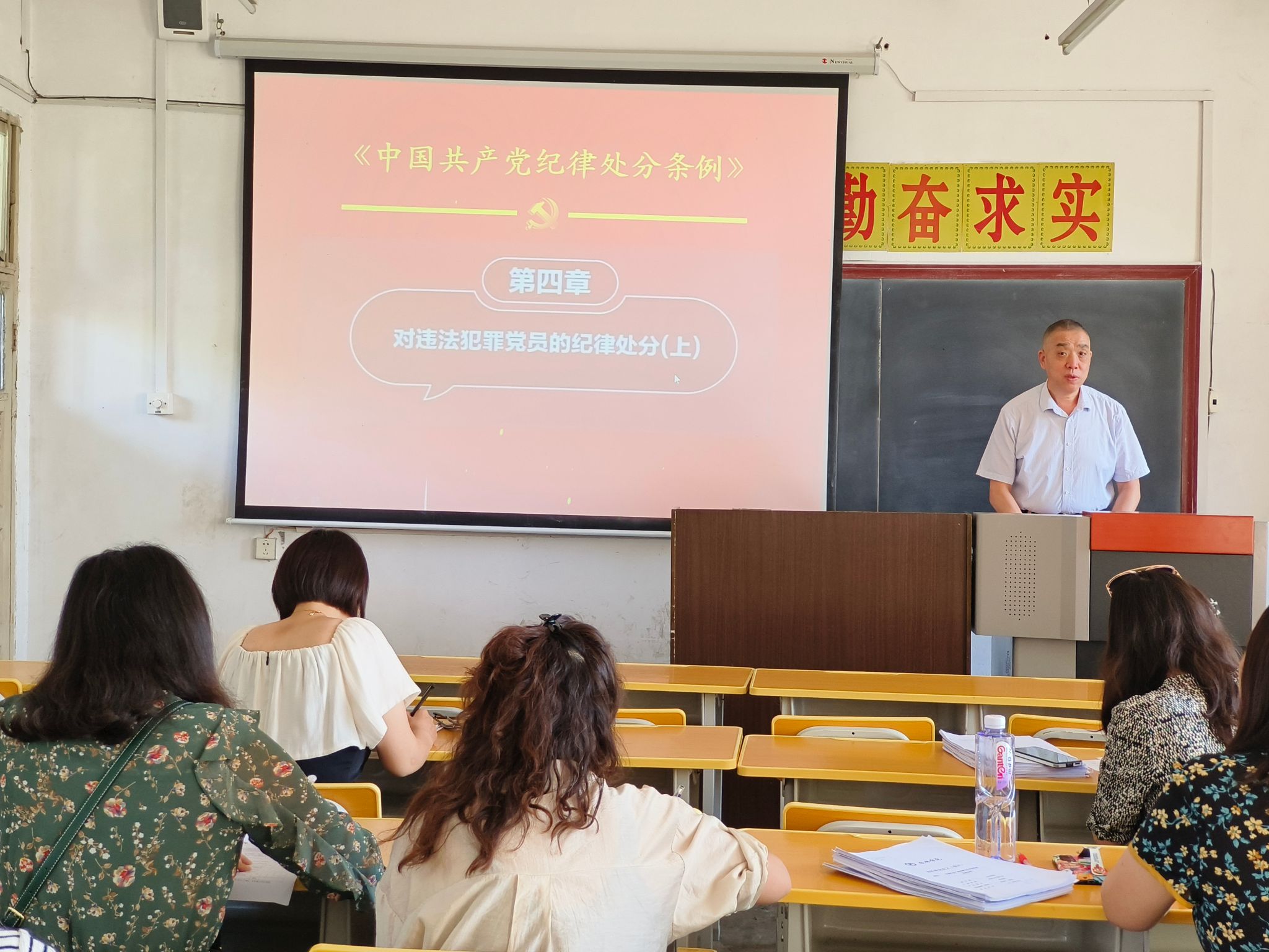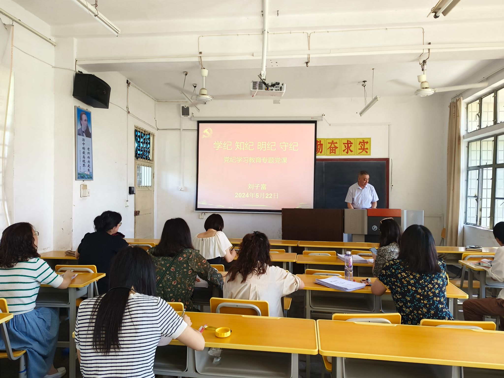5月22日,365完美体育教工二党支部在6107室组织开展以“学纪、知纪、明纪、守纪”为主题的党纪学习教育专题党课学习,支部书记刘子富主讲,全体党员参加了学习。