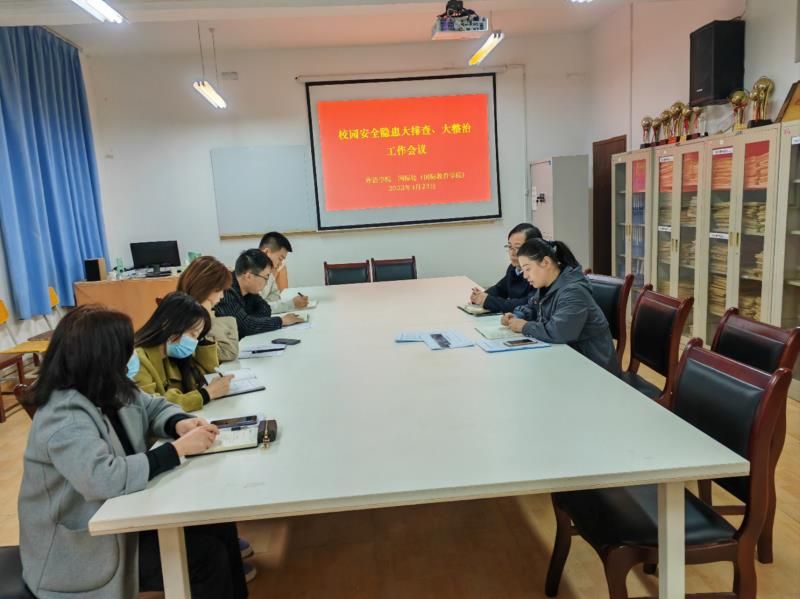 会上,肖红香传达了学校校园安全隐患大排查、大整治专题工作会议精神,传达了学校《关于开展校园安全隐患大排查、大整治的通知》精神及有关要求,就学院开展好安全隐患大排查、大整治进行了安排部署;各办公室在会上就开学以来安全隐患排查和整治情况、安全教育月活动落实情况、学生安全教育和突发事件处理等情况进行了汇报。