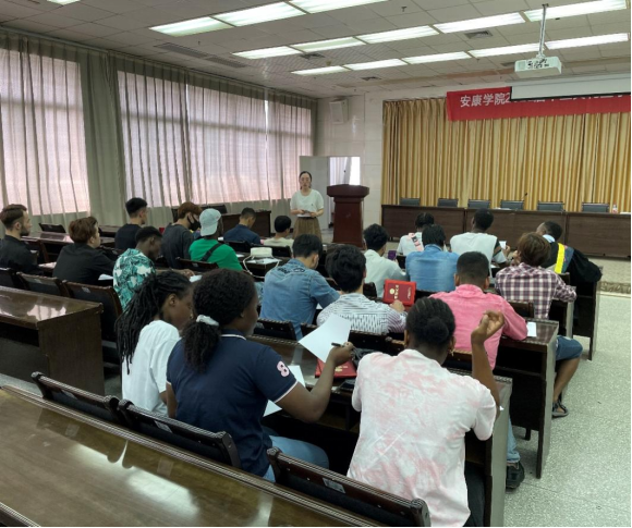 为加强留学生管理及疫情防控,确保留学生暑假期间生活学习的安全。7月6日,国际教育学院召开2022年暑期安全教育大会。副院长陈蕾、学工办主任李泊霖、辅导员陆传梓以及全体留学生参加本次大会,会议由陈蕾主持。