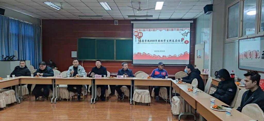 小年已到,新年将至。1月25日下午,安康学院2022年留学生新春茶话会在1018教室隆重举行。副校长张东红、保卫处处长王开忠、后勤处处长郑武生及5名寒假期间留学生管理专班人员参会。