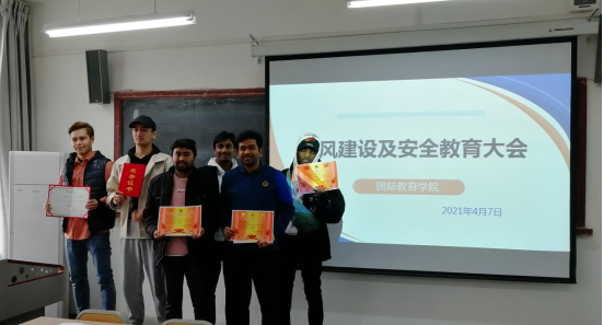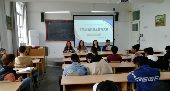 4月7日,国际教育学院召开学风建设及安全教育大会,副院长陈蕾,综合科科长李哲,学工办主任李泊霖,留学生辅导员赵博涛及在校留学生参加会议。会议由李泊霖主持。