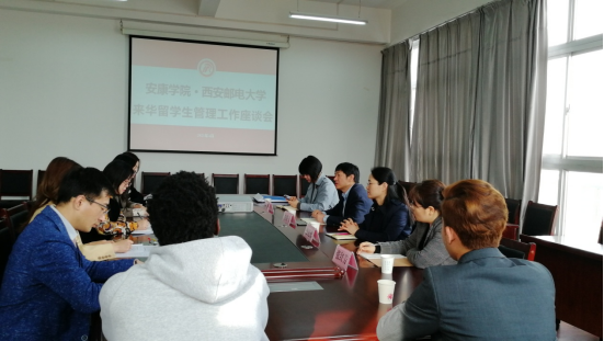 4月5日至6日,西安邮电大学国际合作与交流处处长李鹏飞、副处长廖延娜、外教及留学生管理事务科科长周敏等一行4人来365完美考察交流来华留学生招生、培养和管理工作。副校长张东红会见了李鹏飞一行,对李鹏飞一行来访表示欢迎,并向来宾介绍了365完美的历史沿革,扎根秦巴“服务基础教育、服务‘三农’、服务区域经济社会发展”,走地方化、应用型、开放式的特色发展办学情况。
