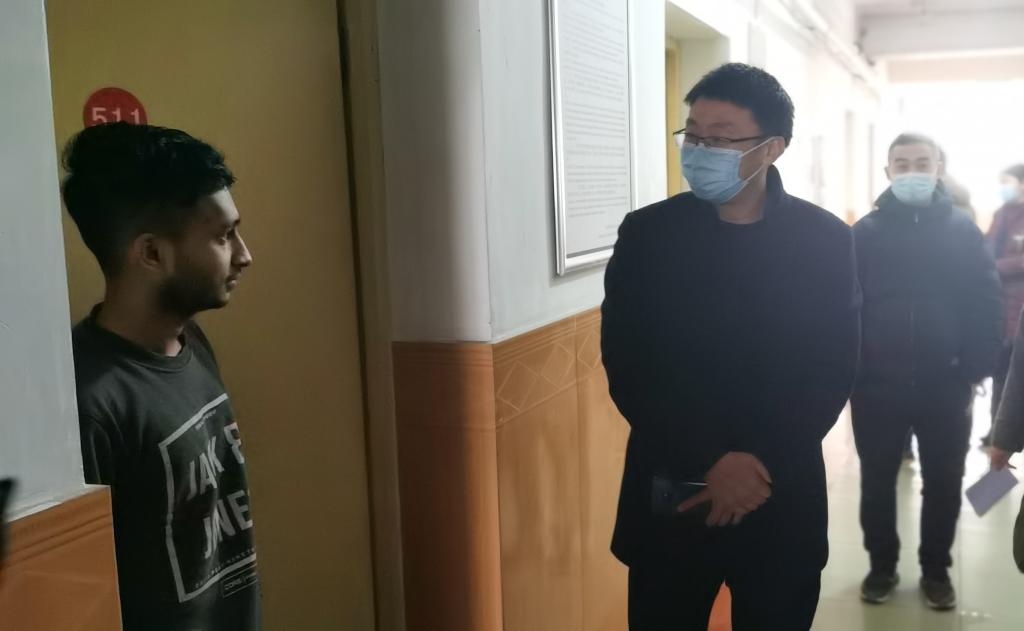 张东红一行深入留学生公寓,检查疫情防控措施落实情况,重点围绕留学生日常管理、公共环境卫生、公寓防控管理、学生身心健康等方面进行详细检查了解,并组织召开工作研判会。国际教育学院院长查芳汇报寒假期间留学生疫情防控具体工作,相关部门对检查中发现的安全隐患一一梳理,明确主体责任,落实整改方案。